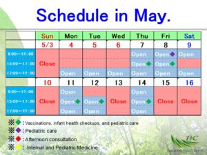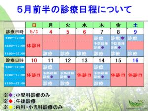 令和8年5月前半の診療日程ですが、当方の都合により一部変更させて頂きます。